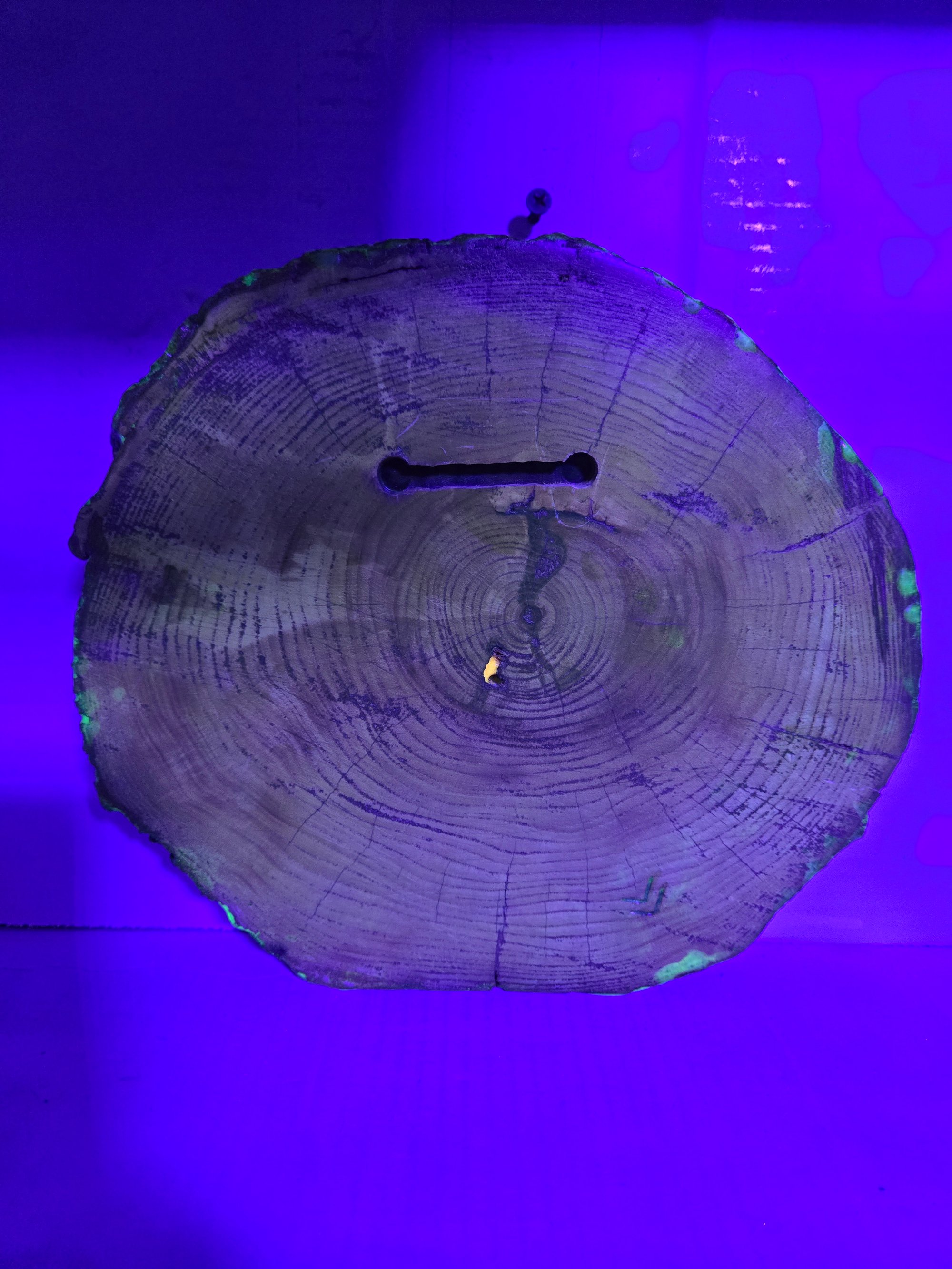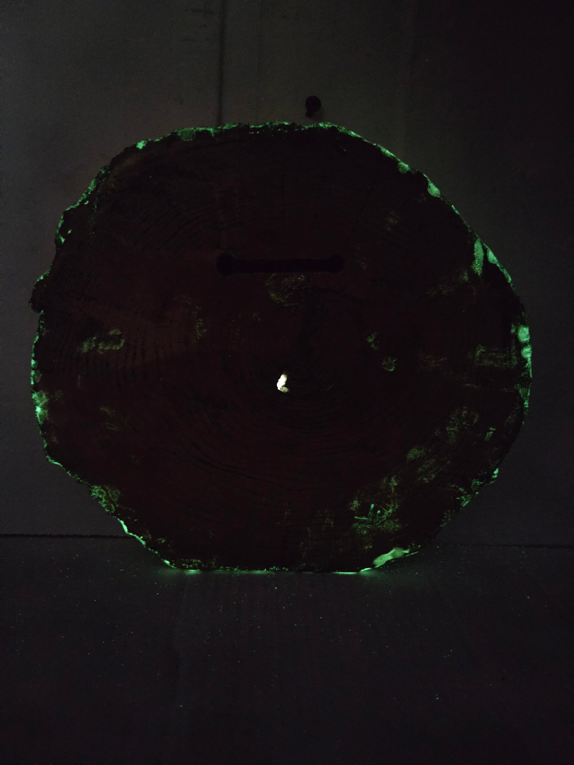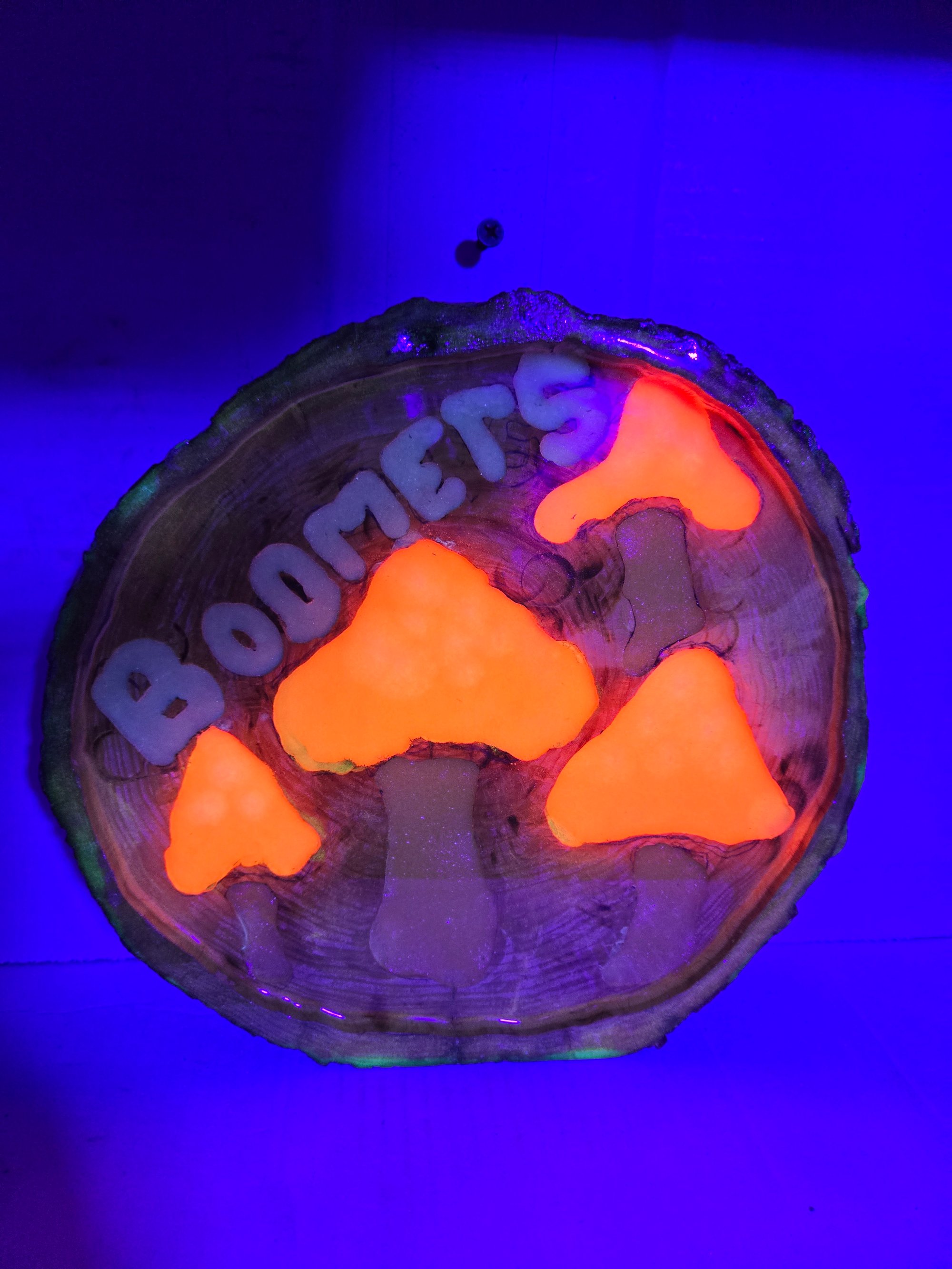 Handcrafted wood tray that glows in the dark and has real cannabis leaves encased in epoxy