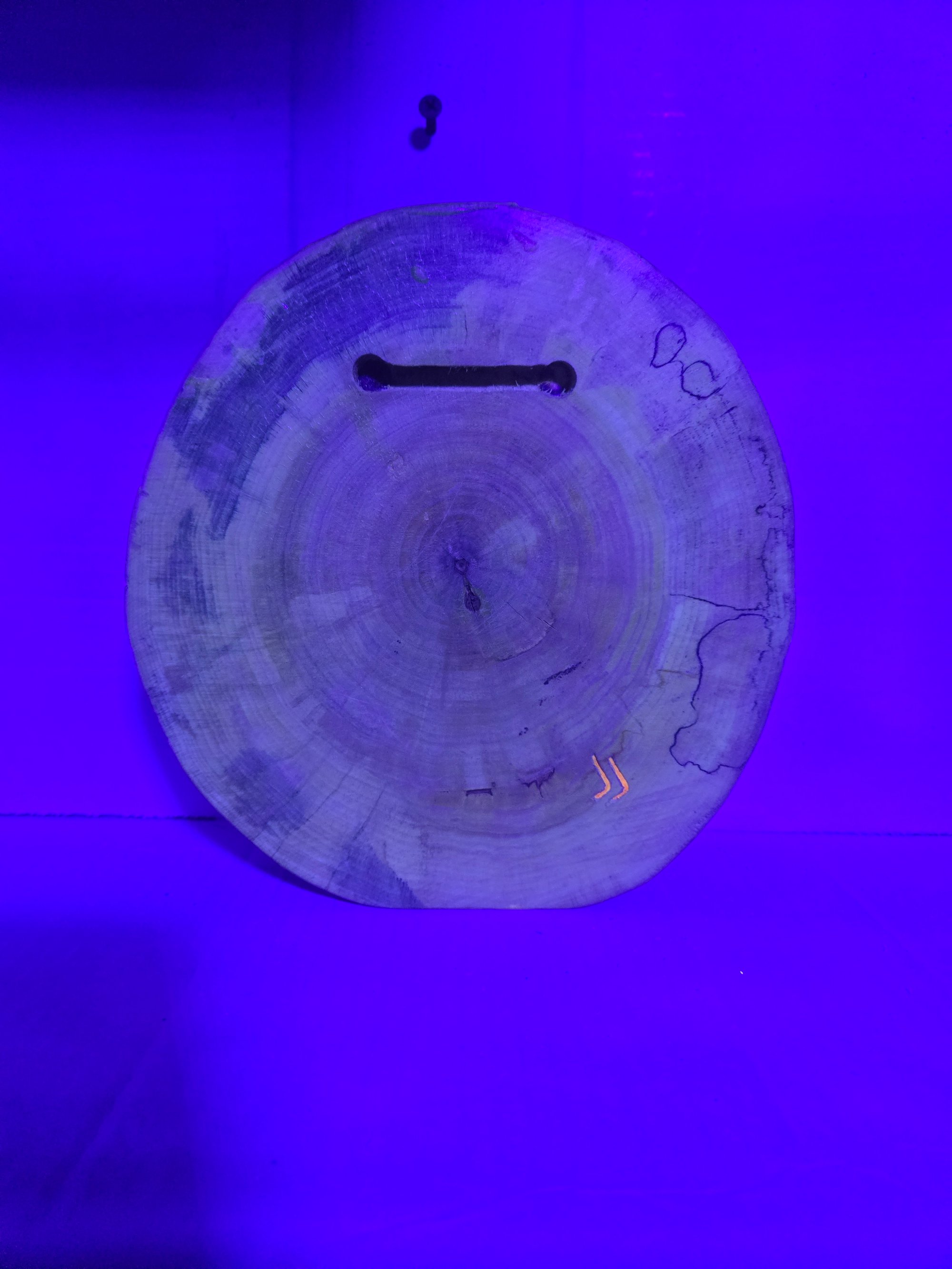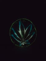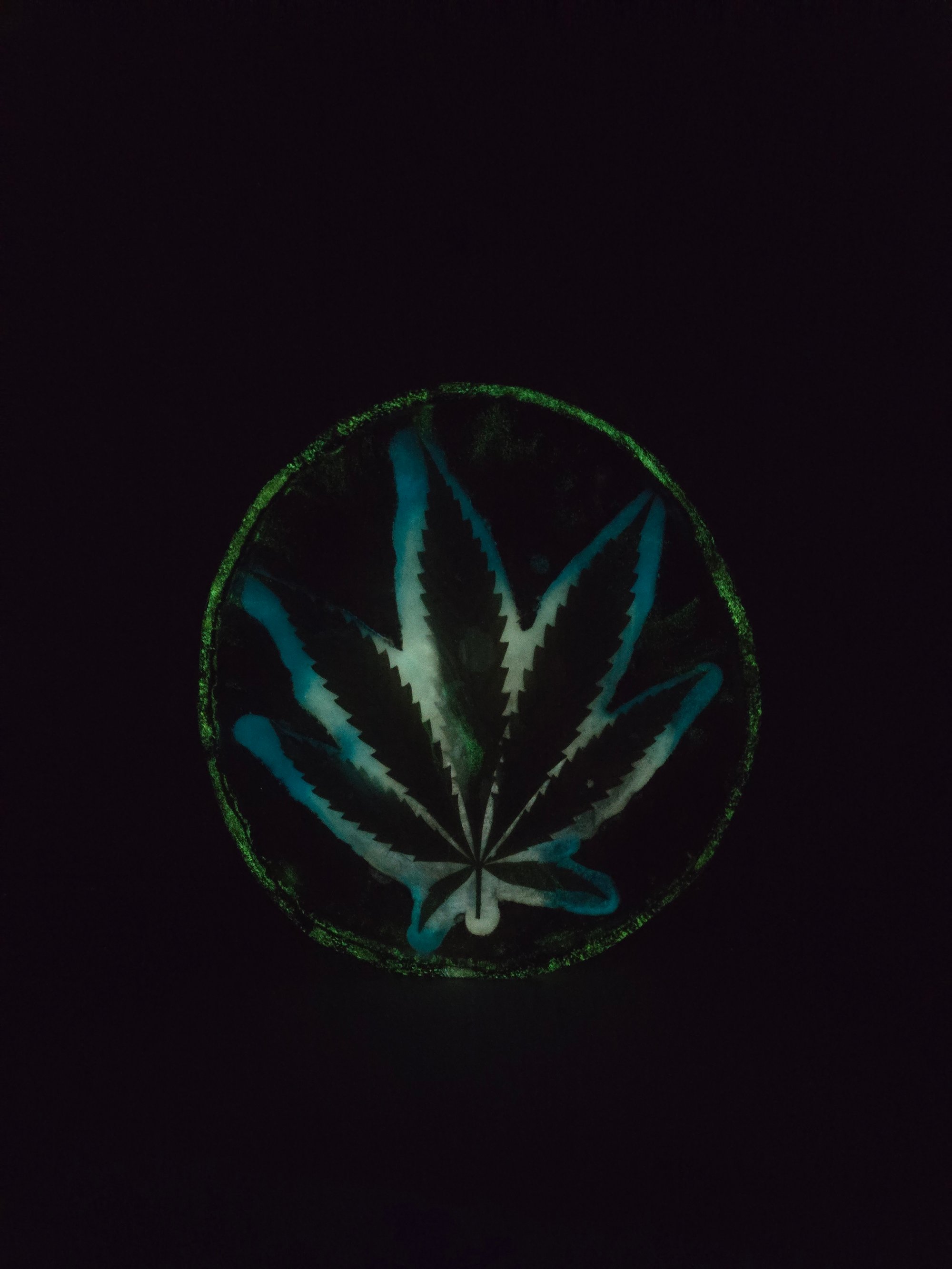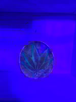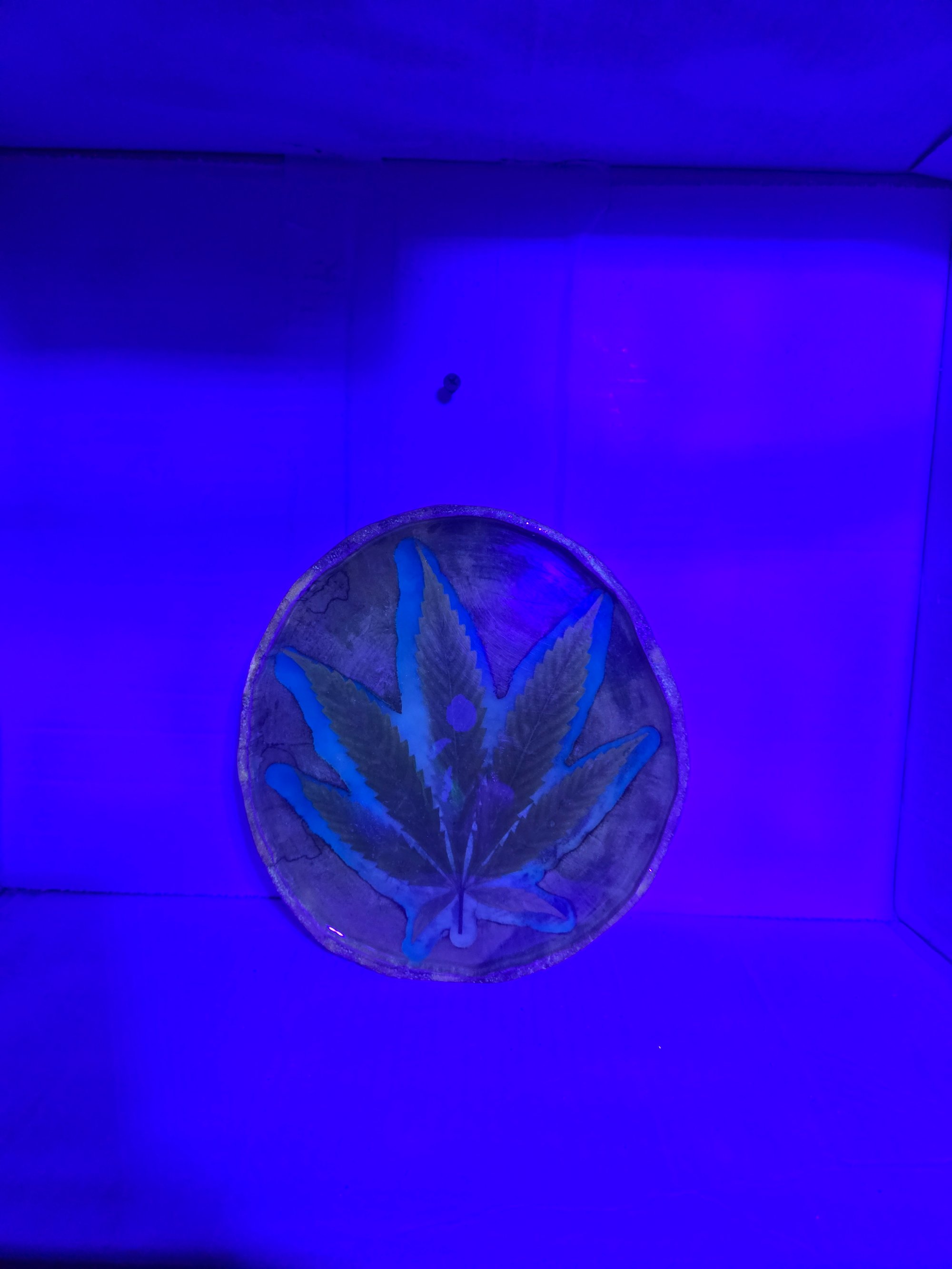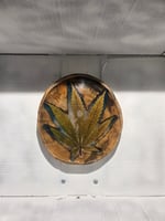 Handcrafted wood tray that glows in the dark and has real cannabis leaves encased in epoxy