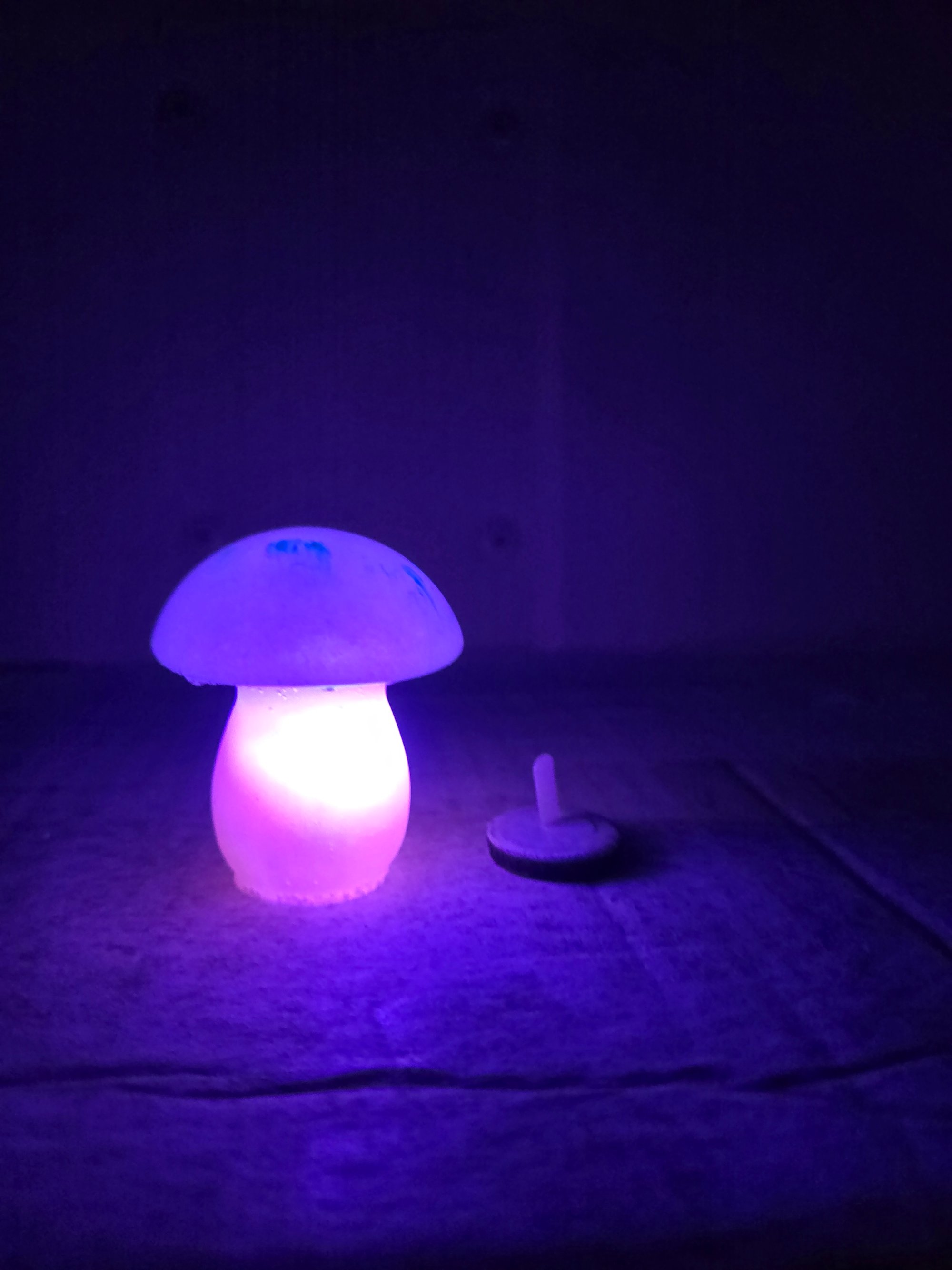 Epoxy mushroom that glows in the dark and lights up when magnet is removed