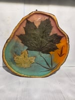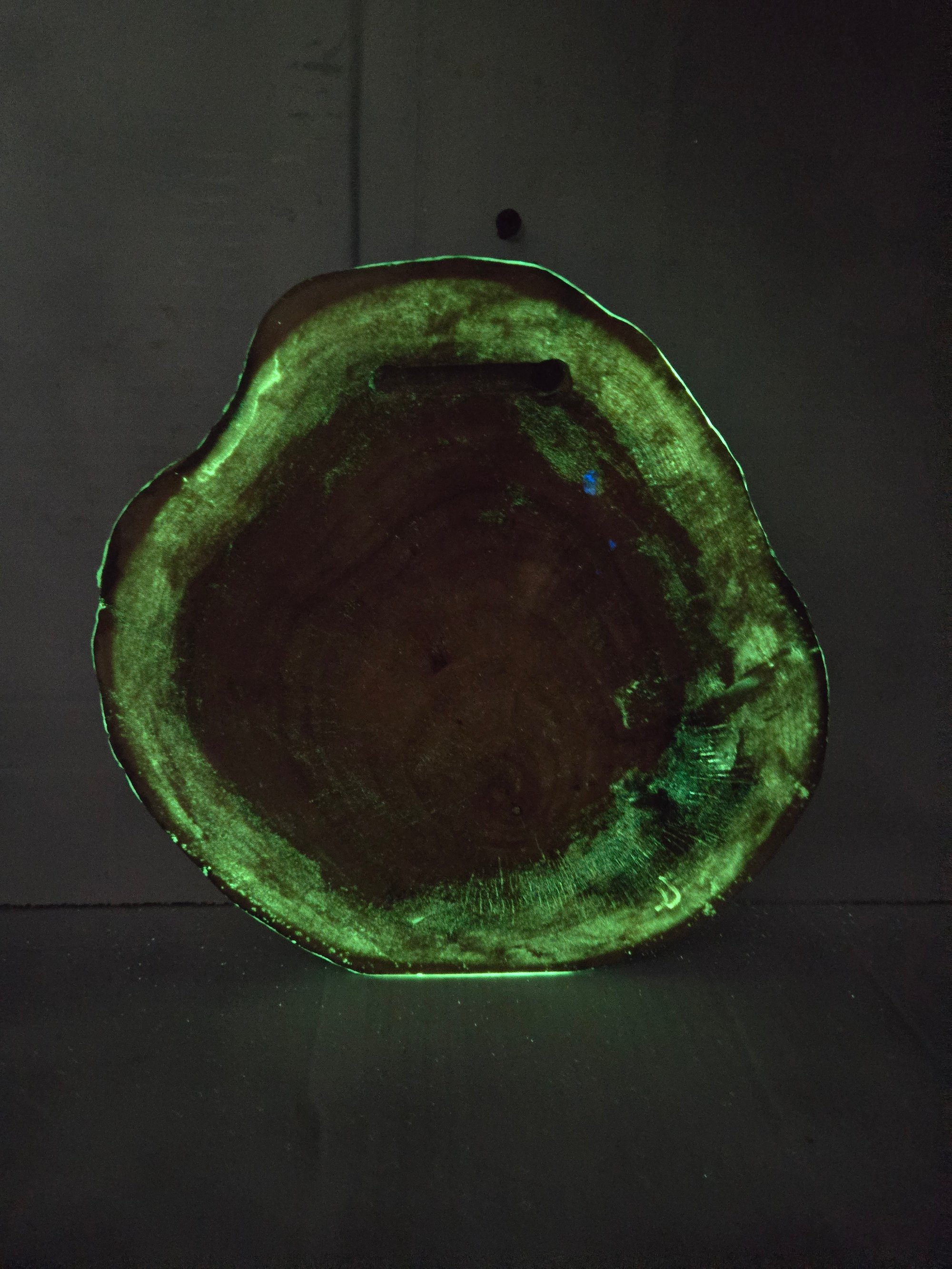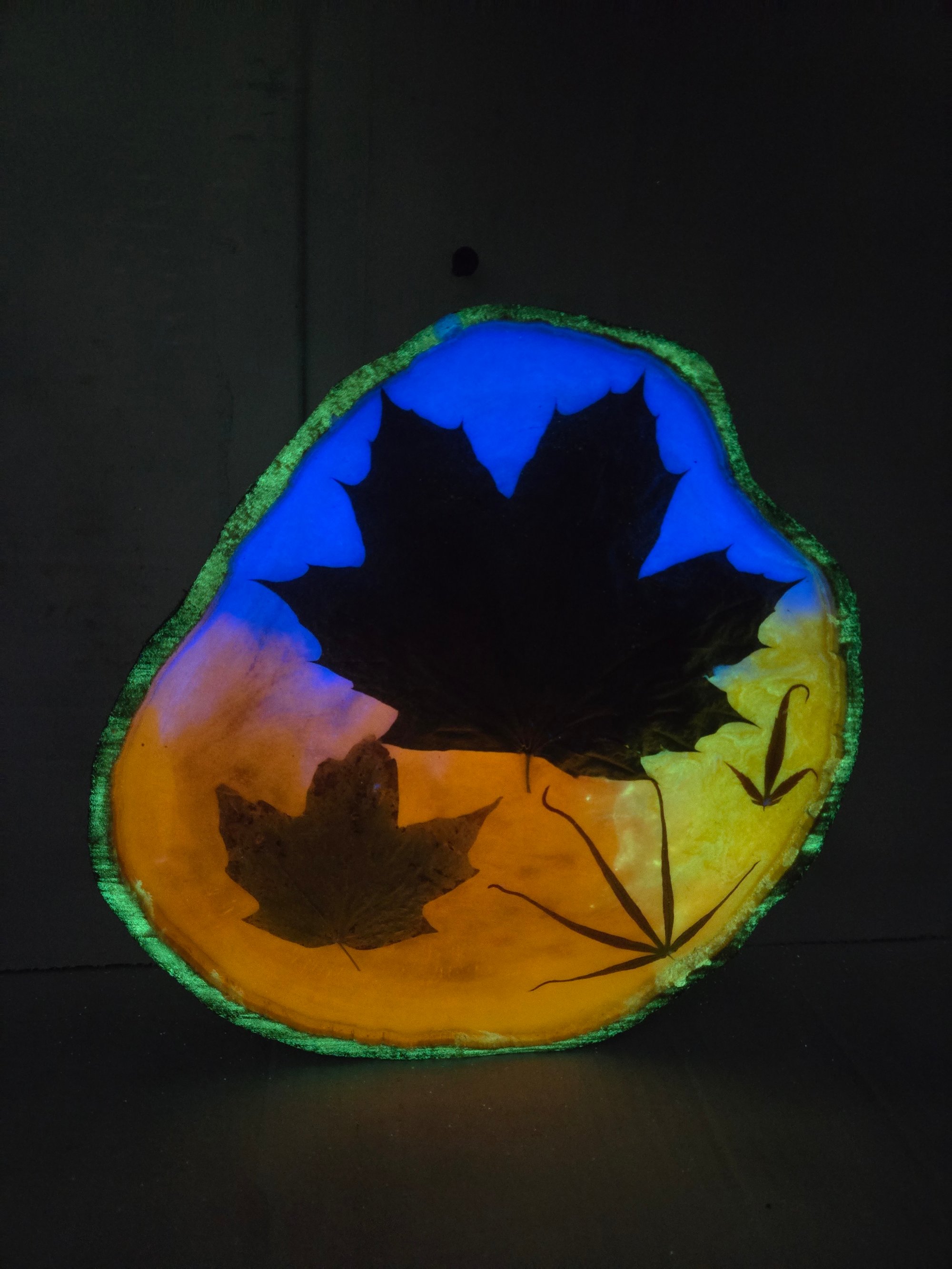 Handcrafted wood tray that glows in the dark and has real maple leaves encased in epoxy