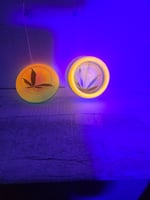 Mushroom jar that glows in the dark and has real cannabis leaves encased in epoxy
