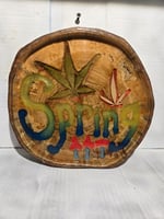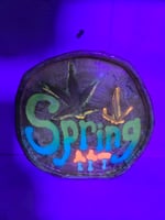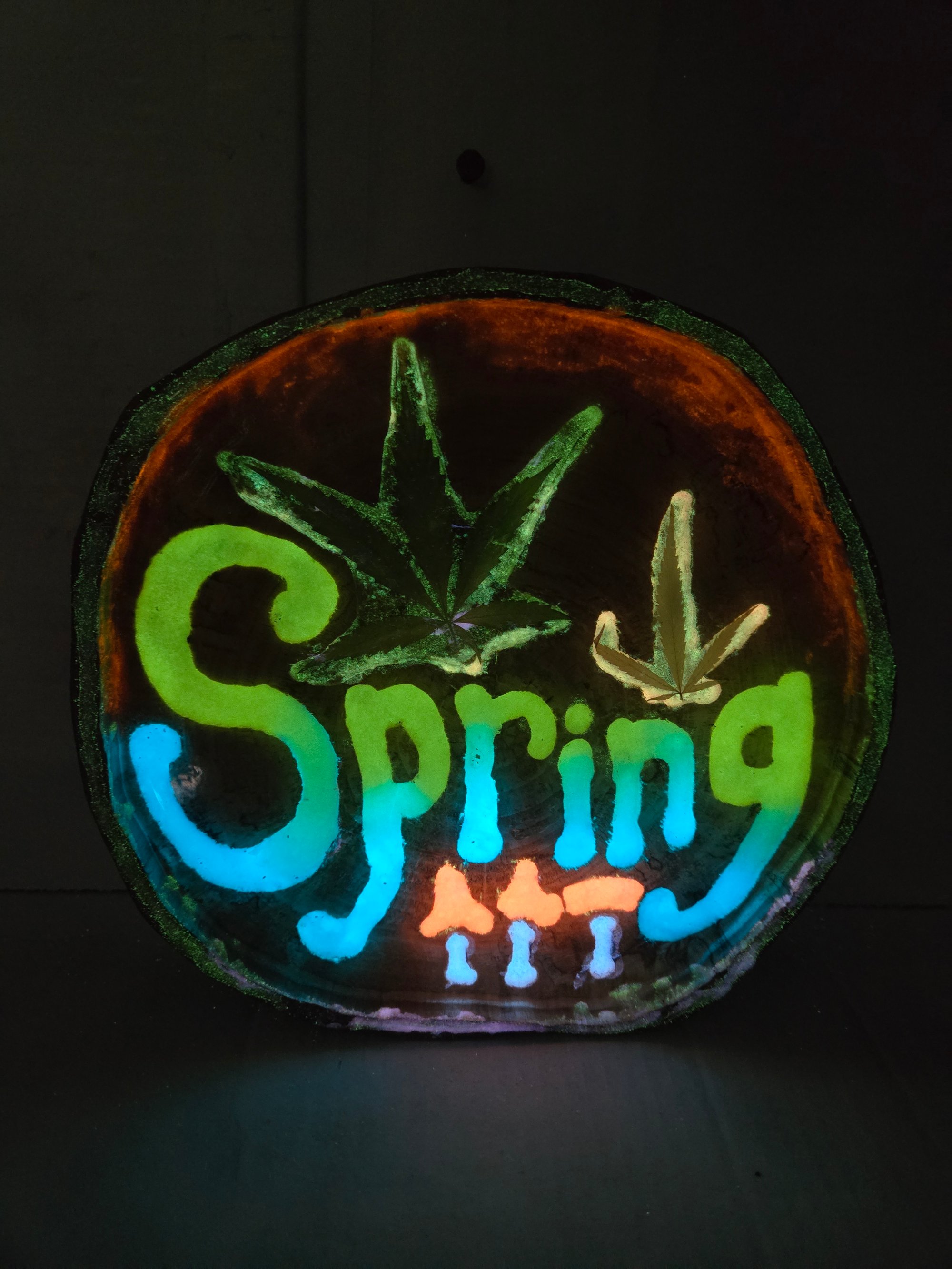 Handcrafted wood tray that glows in the dark and has real cannabis leaves encased in epoxy