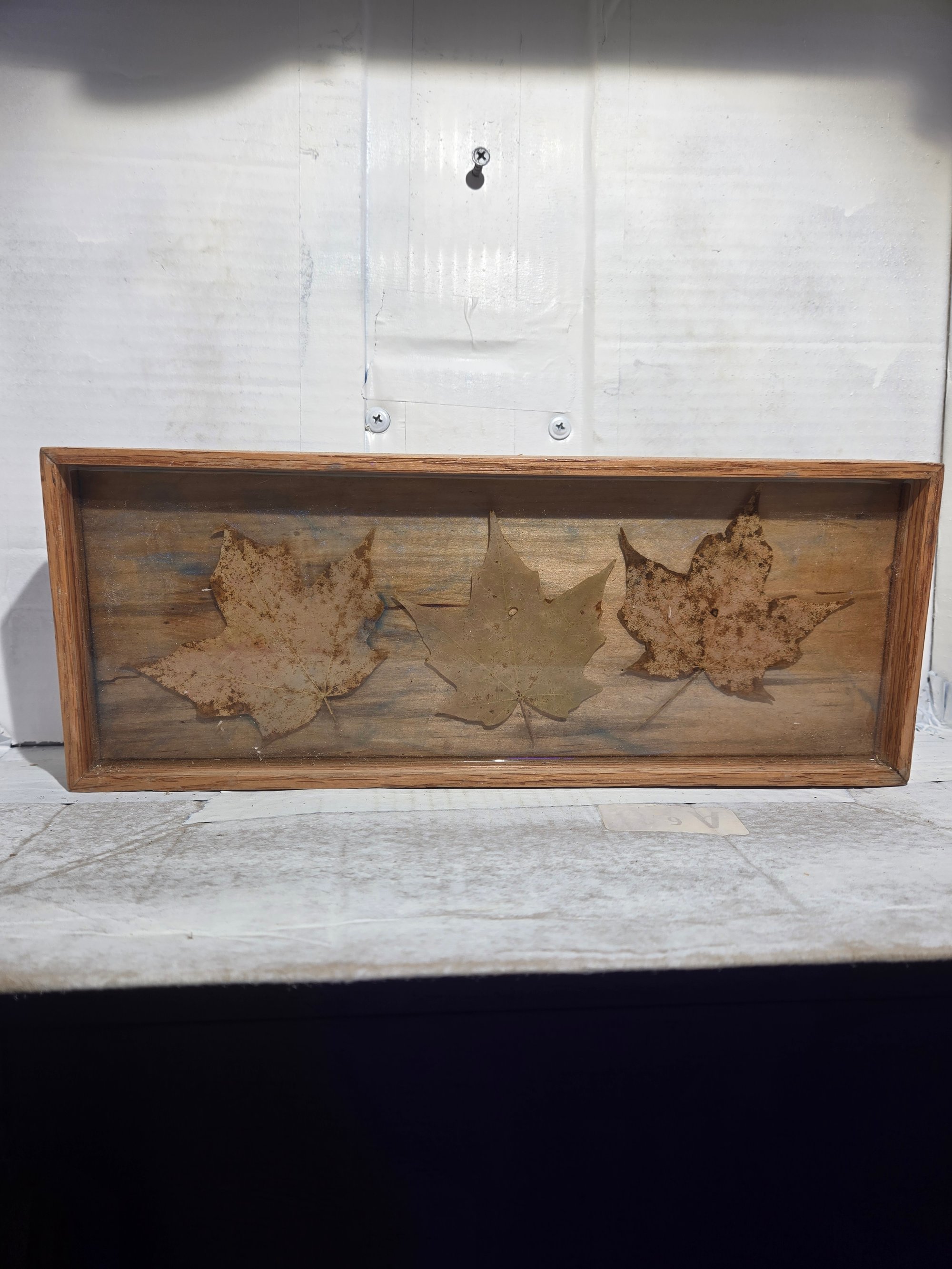 Handcrafted wood tray that glows in the dark and has real maple leaves encased in epoxy