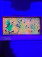 Handcrafted wood tray that glows in the dark and has real cannabis leaves encased in epoxy
