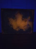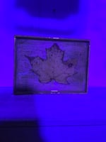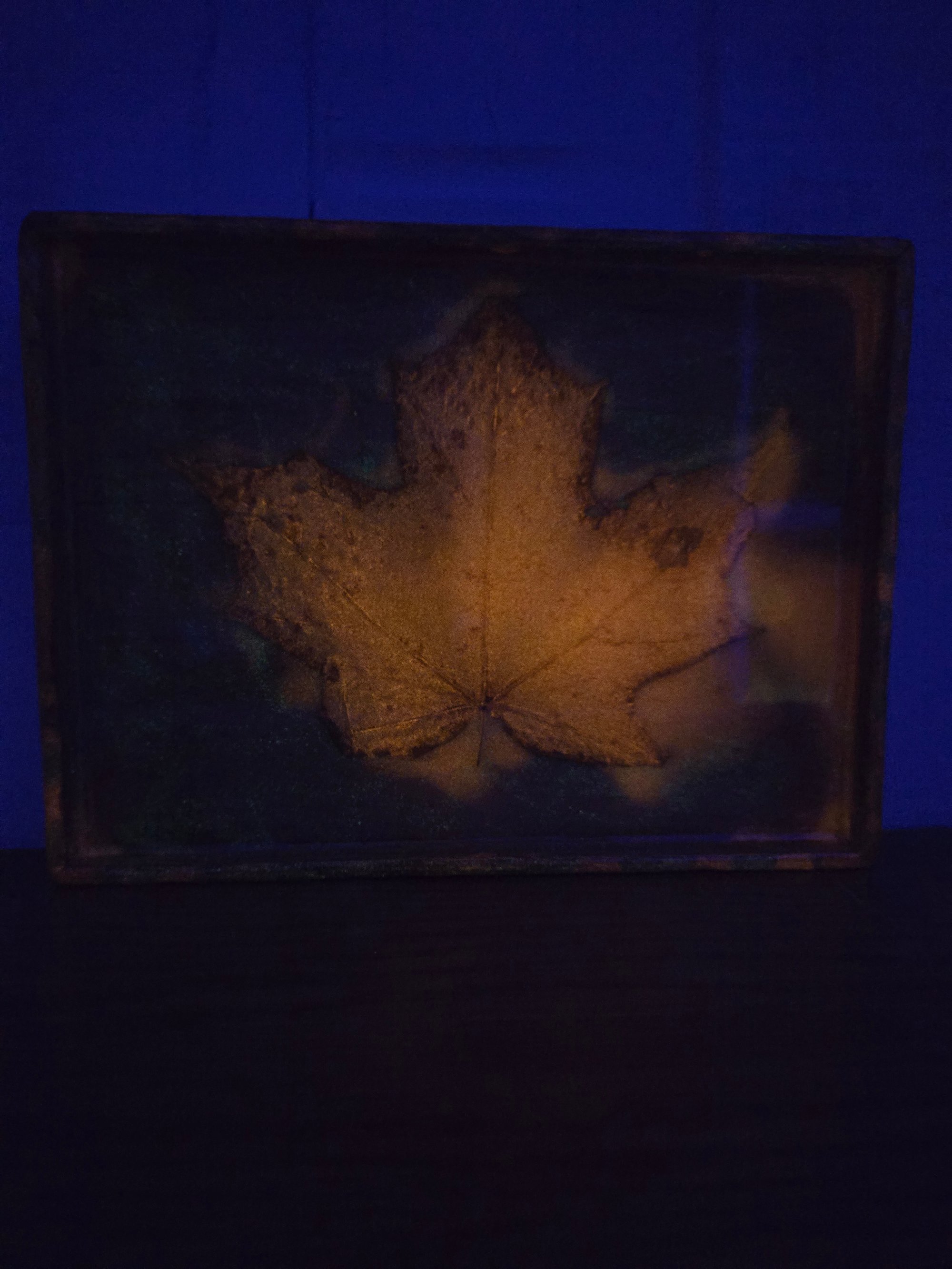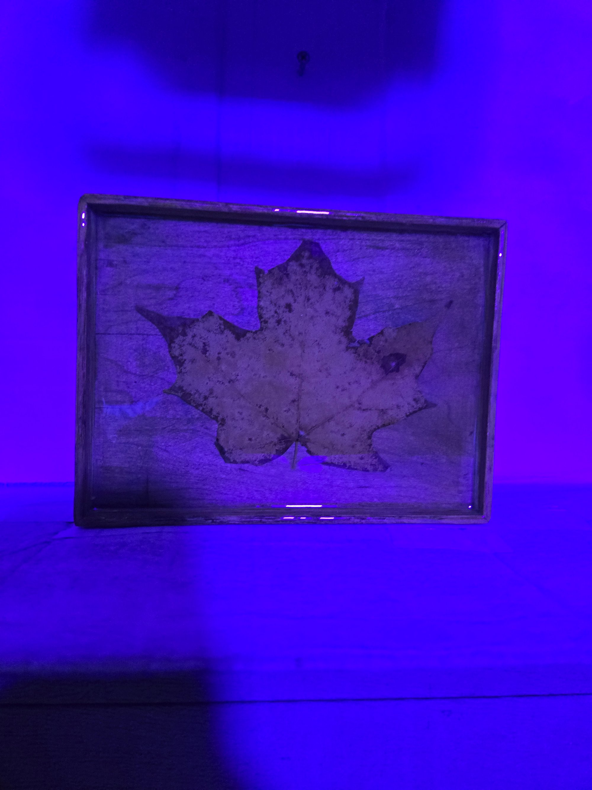 Handcrafted wood tray that glows in the dark and has real maple leaves encased in epoxy