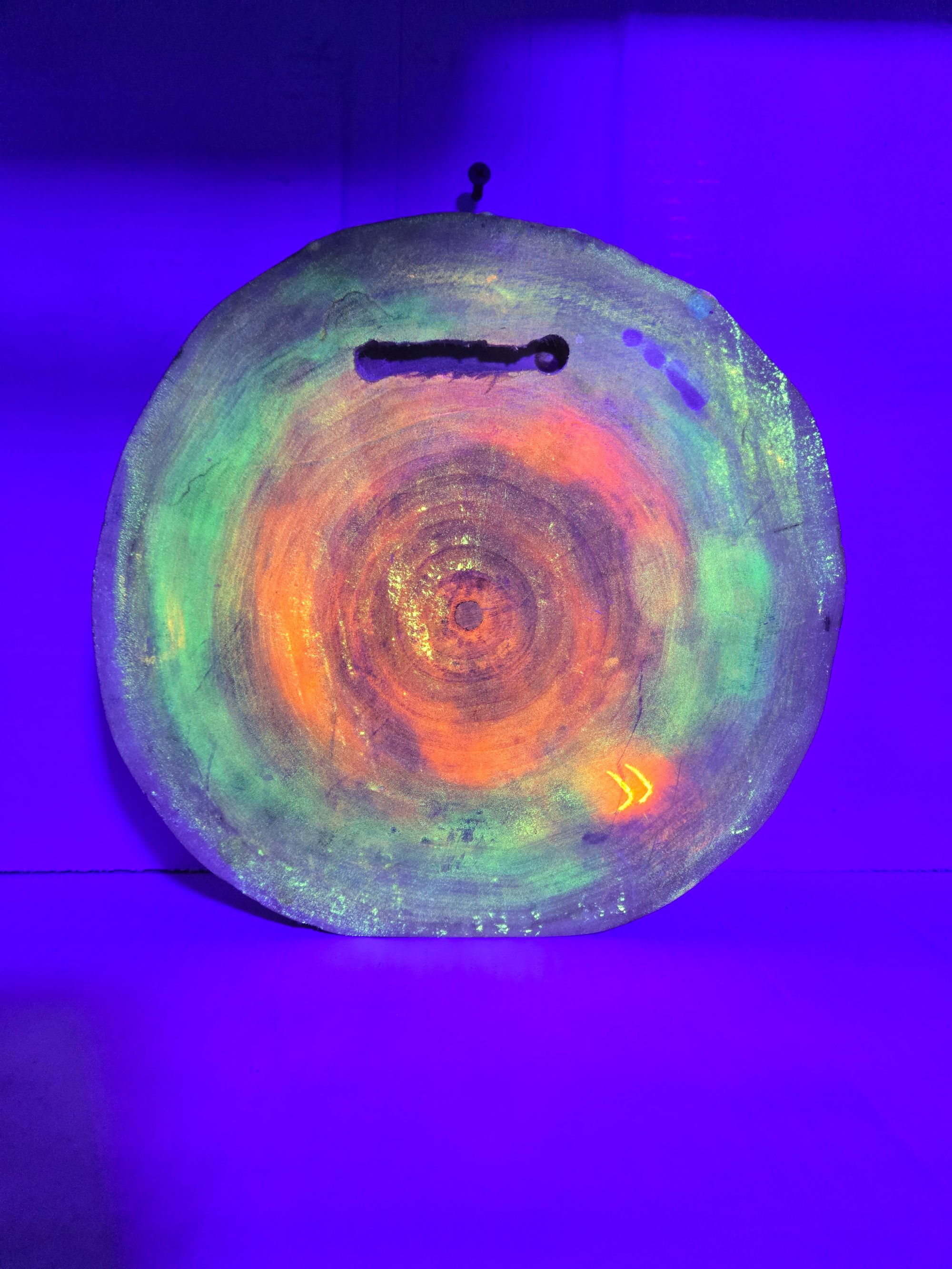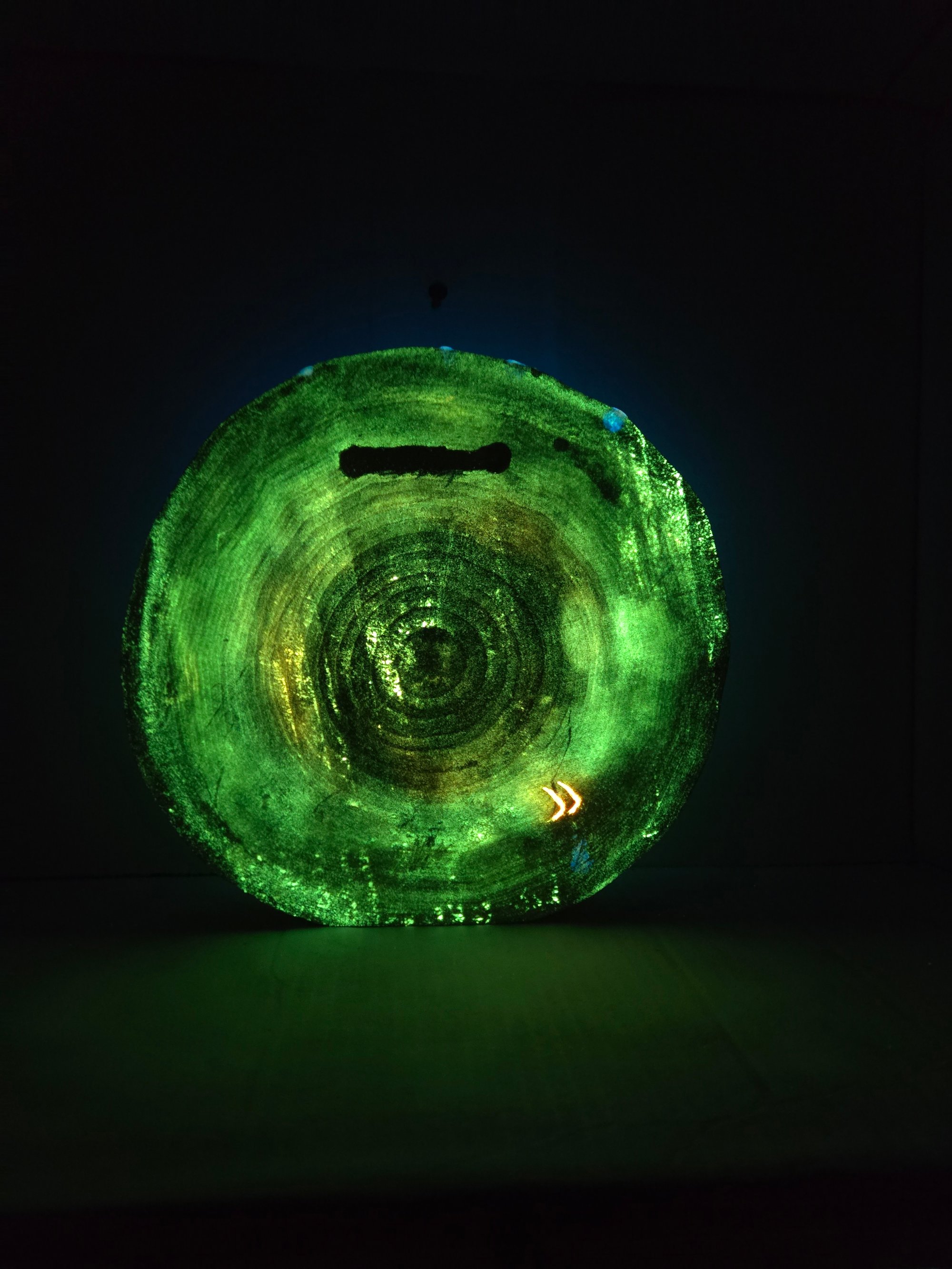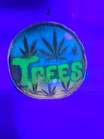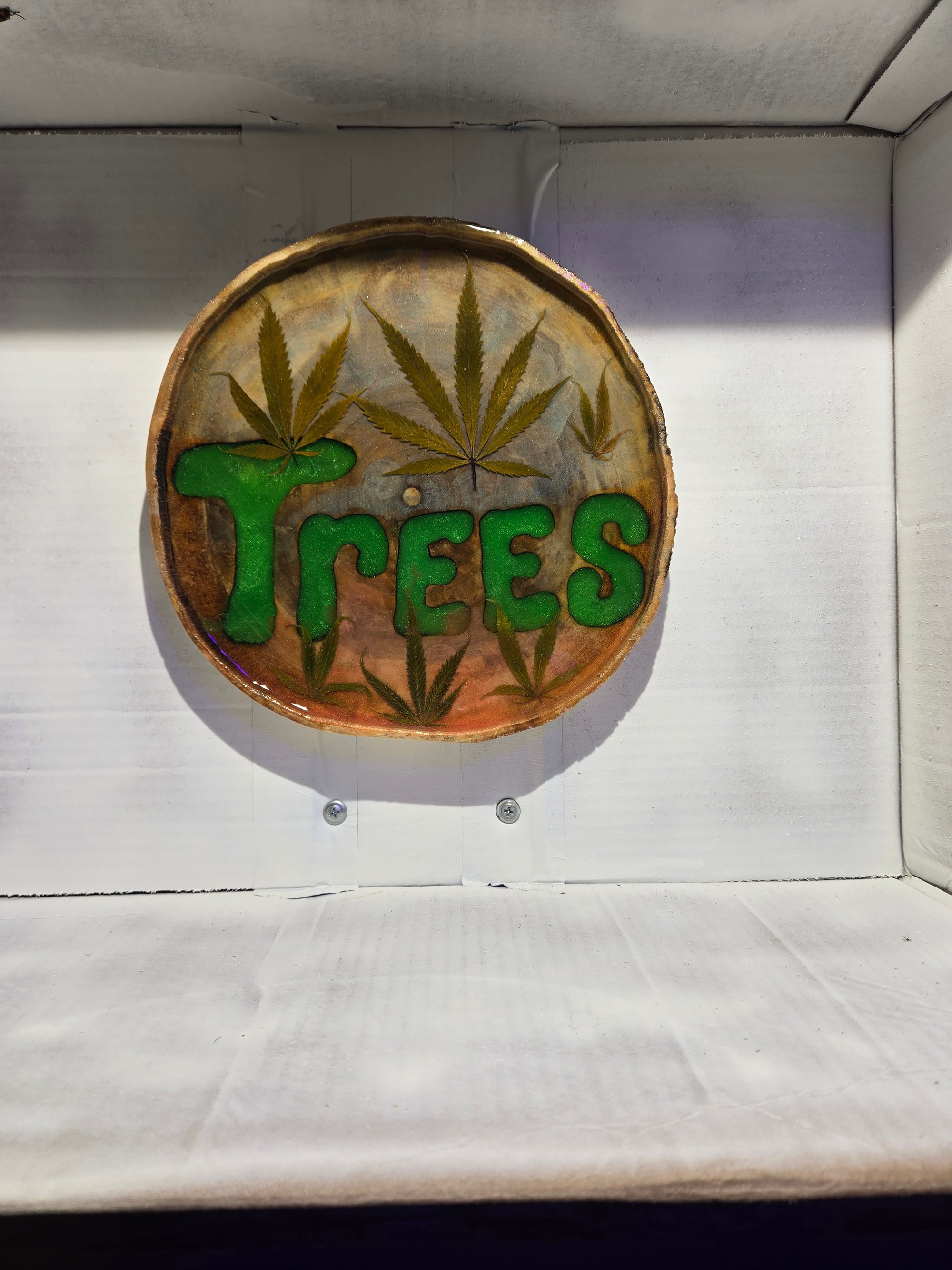 Handcrafted wood tray that glows in the dark and has real cannabis leaves encased in epoxy